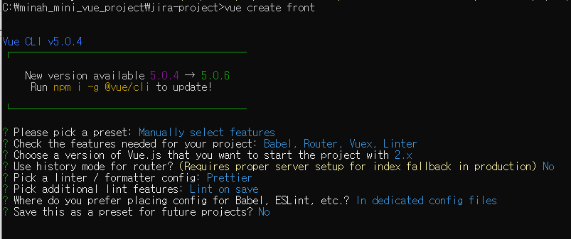 vue creat 프로젝트명