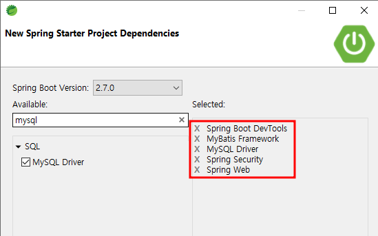 -Spring Web: 웹개발에 필요한 종속된 의존성 디스크립터들의 집합 >> webmvc, tomcat, logging