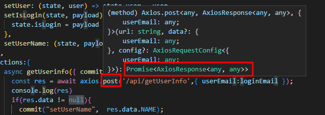 axios.post 는 return type이 Promise 이다.