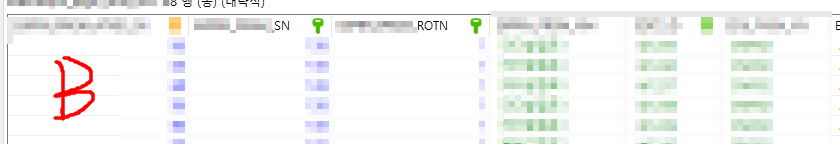 B테이블은 A테이블의 SN과 ROTN 컬럼을 참조하고있다.